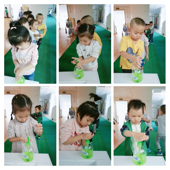 瞧! 我们会排好队有序的准备洗手呢!遵守秩序,人人有责!