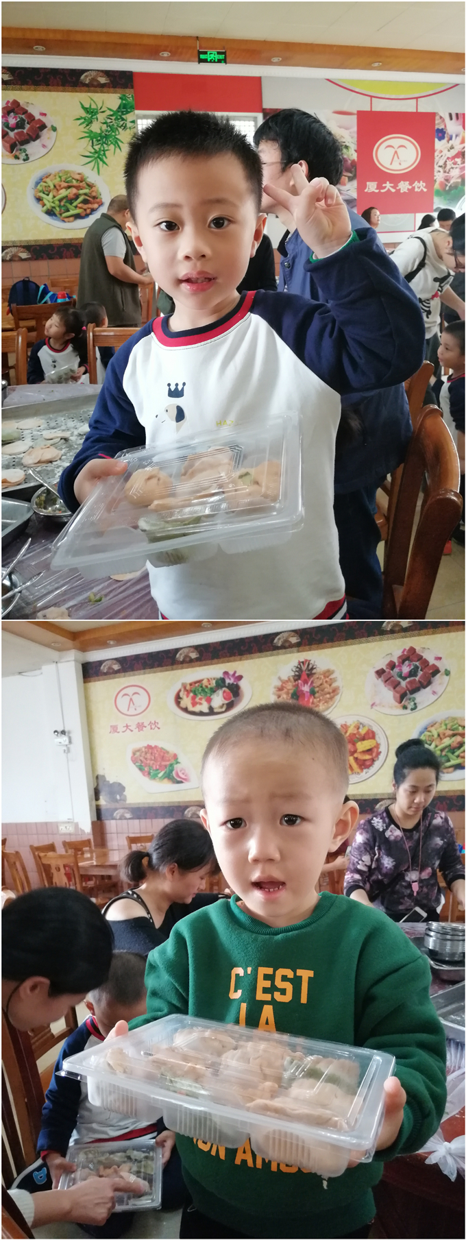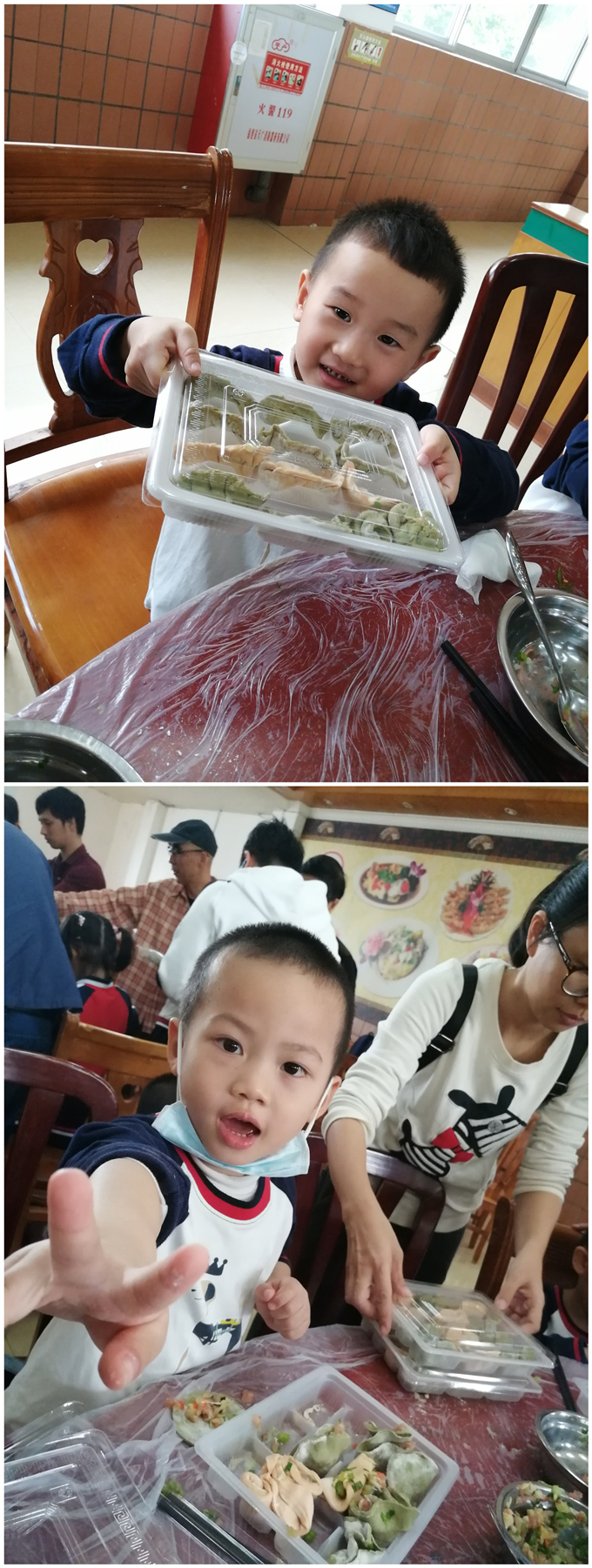 时光匆匆流逝,餐厅探秘之旅结束了,但宝贝们收获满满。不仅参观了厨房,认识了各种厨房用具,知道了食物的制作流程,还做了小小厨师亲自体验了包饺子!希望宝贝们以后用餐时间都能认认真真对待餐桌上的食物,开开心心地吃完自己的饭菜,健健康康地成长!