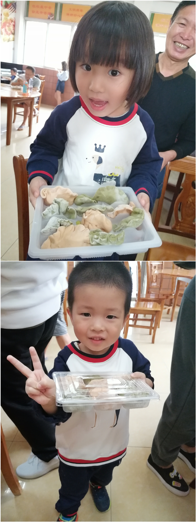 看完厨师叔叔的厨艺,宝贝们也想大显身手。包饺子时间到啦!瞧,宝贝们在爸爸妈妈的帮助下包得有模有样,自己包的饺子也特别的美味。