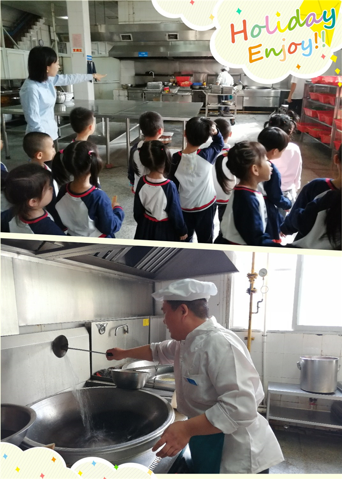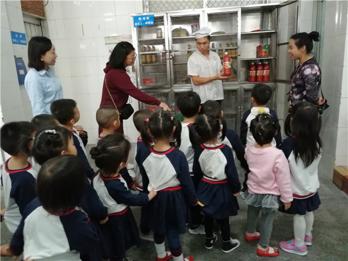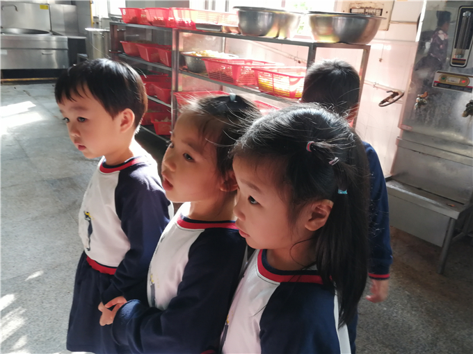 在餐厅经理王阿姨的带领下,宝贝们进入餐厅厨房,寻找厨房里的秘密。