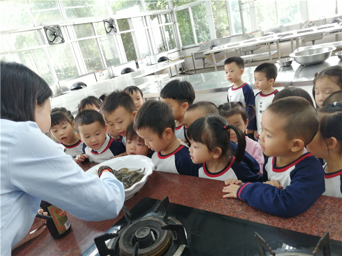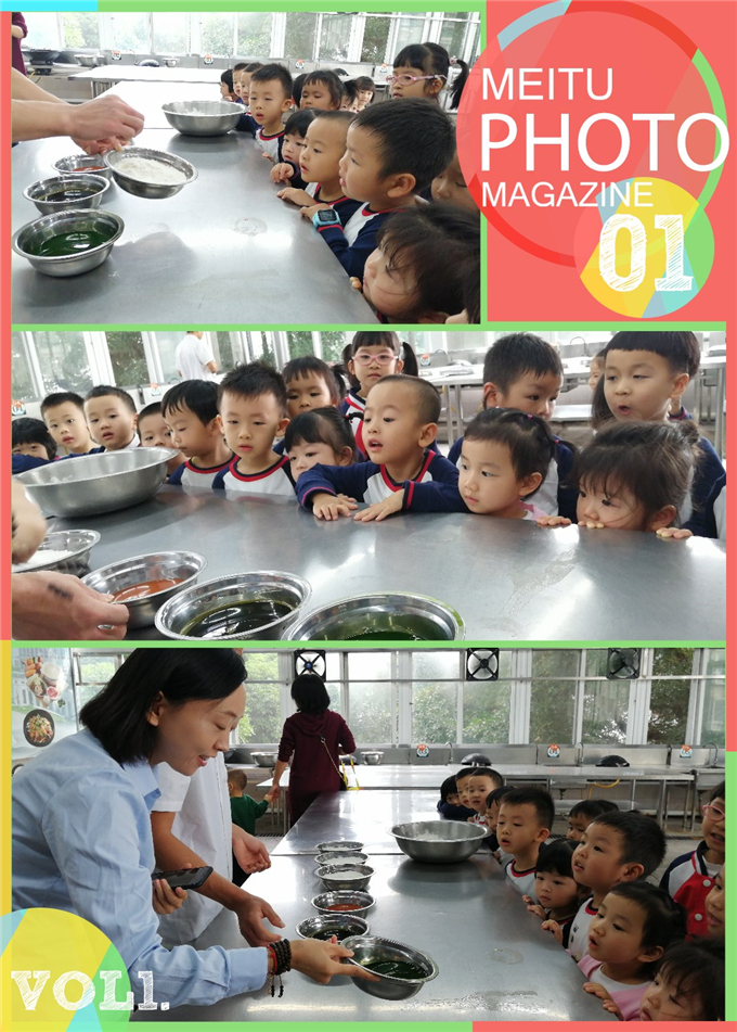“叔叔叔叔,这些五颜六色的是什么水呀?”“这些白白的粉是什么呢?”宝贝们围着厨师叔叔追问着。