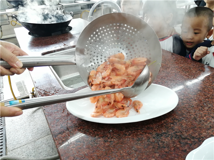 “虾里藏着一种叫“”虾青素”的东西,煮熟后就会呈现出红色。”厨师叔叔详细地向宝贝们解释着。哇,不一会美味的虾煮好啦。