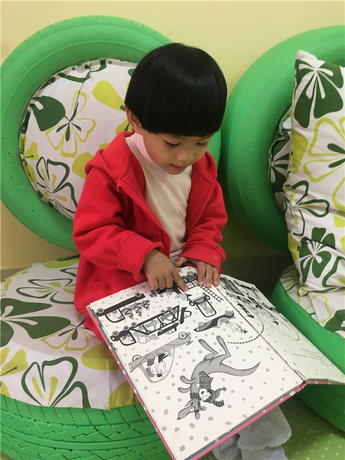 “咖啡小吧阅读区”很是亲切。小朋友们能轻松自如地抽出书本,阅读区里光线适宜,你看大家,拿起比自己还大的书本露出的表情也是一脸满足呀!