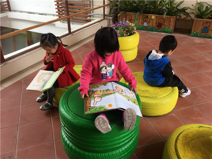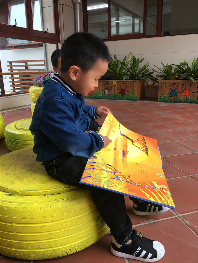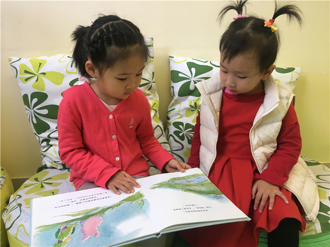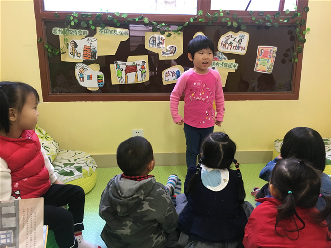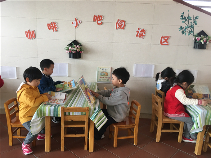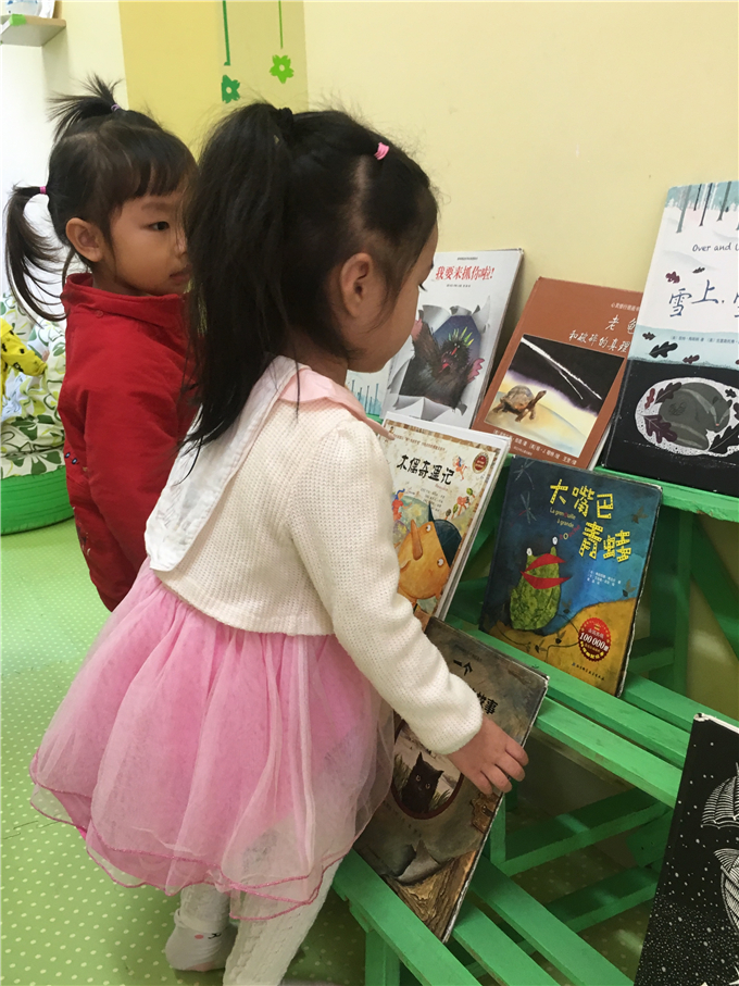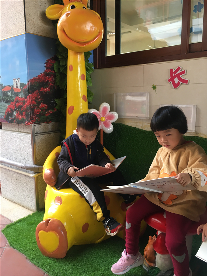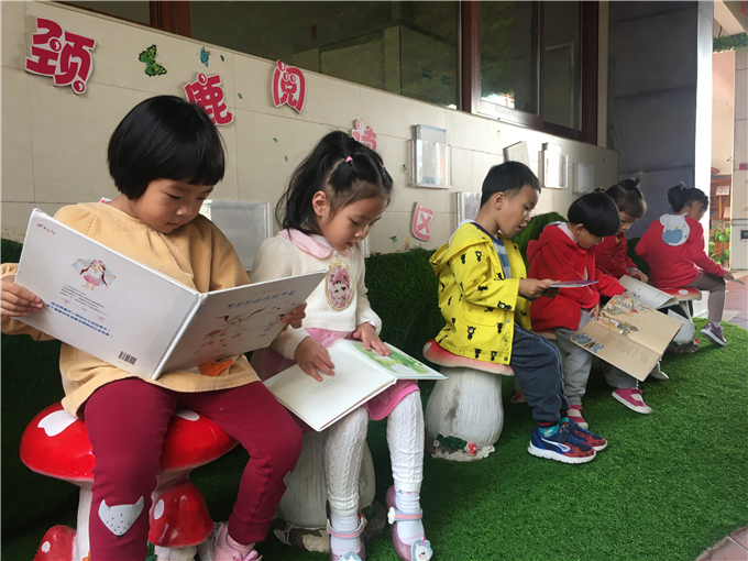 幼儿园里传递着这样一句话:“书香浸润童心。” 小朋友们在幼儿园里无论是散步、玩耍都能看到随处可见的阅读角,他们可以在“书海”中畅谈、想象、遨游,宛如爱丽丝梦游仙境般,在书中里可以和主人公一起展开各种各样有趣的“冒险”。