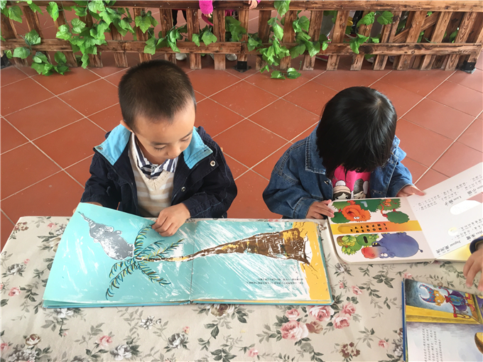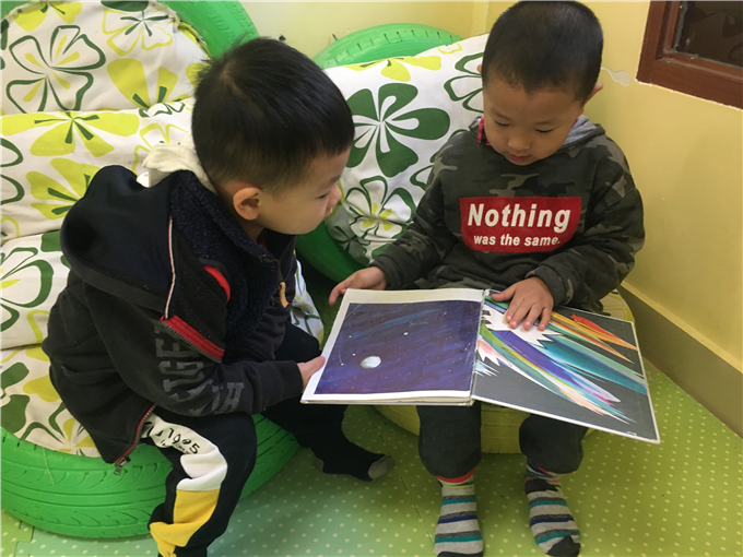 节节和柯柯、宇宇和鸣鸣兄弟也在看图书,津津乐道。