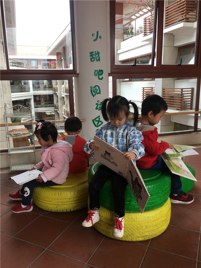 幼儿园里还有许许多多温馨可爱的阅读区,比如,十分吸引小朋友们的“小松鼠的家”就在“小山庄”阅读区。