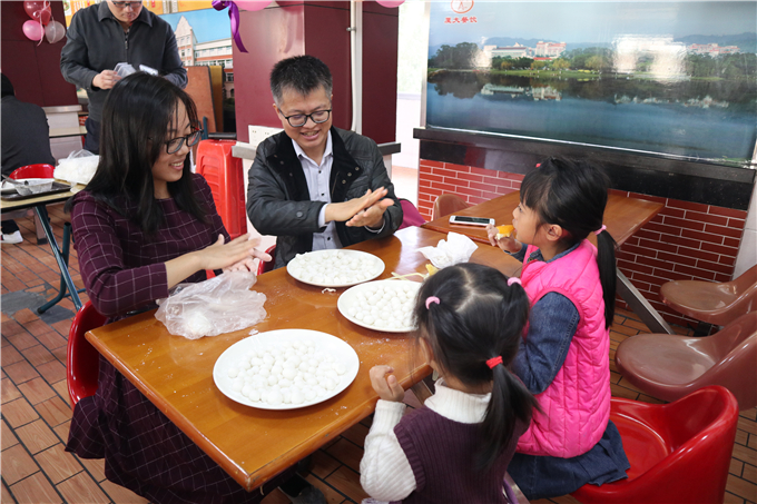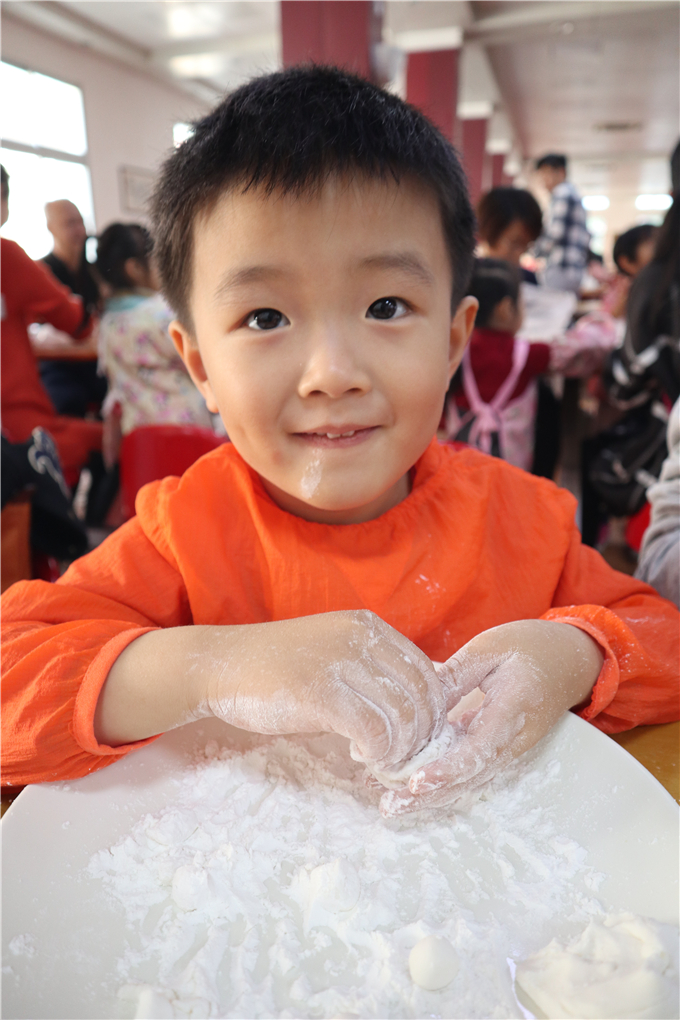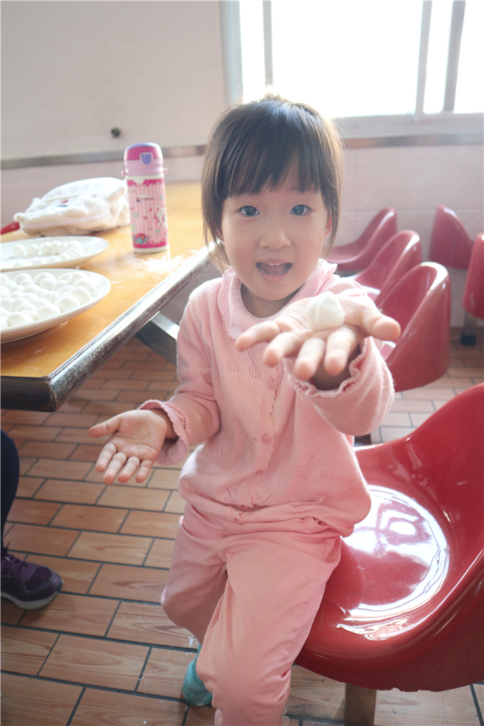 活动场地上大家热火朝天的搓着汤圆,时不时还传来我们的咯咯笑声,实在太好玩了。