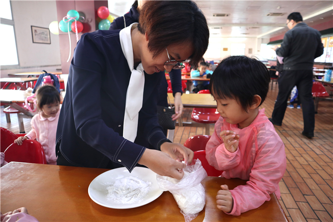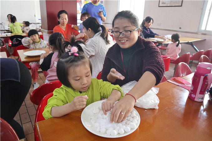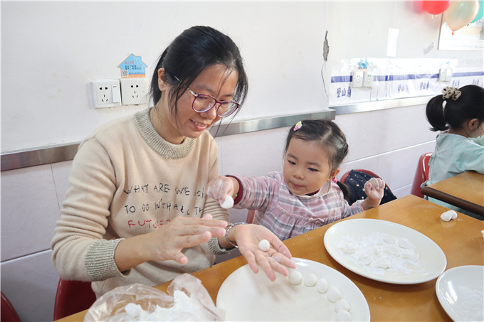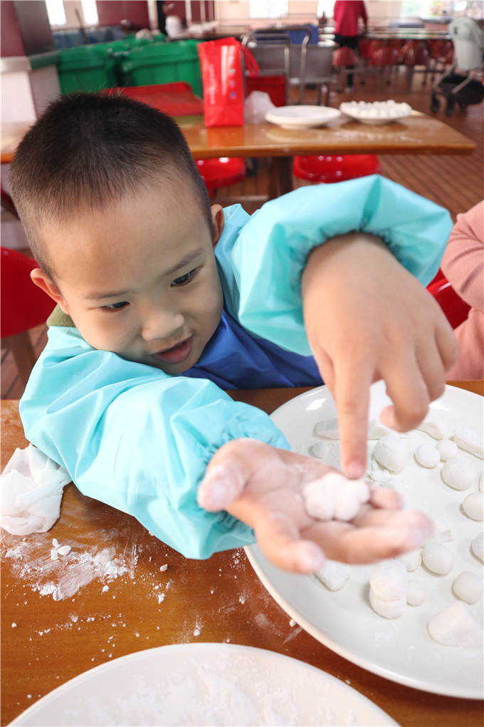 拿着准备好的材料,我们和爸爸妈妈一起动手搓汤圆。别看我们年纪小,搓汤圆我们是认真的!