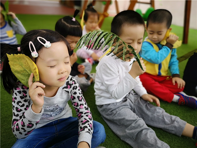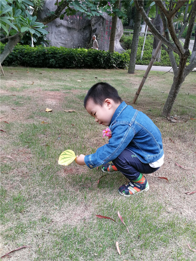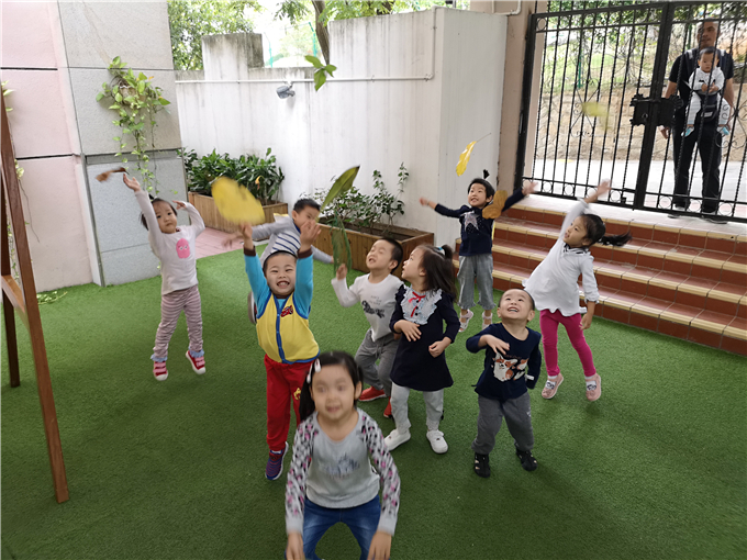 秋天是五彩斑斓的,树叶飘落,绿色的、黄色的......千姿百态,俯拾即是,这都是大自然赐予孩子们的天然玩具。