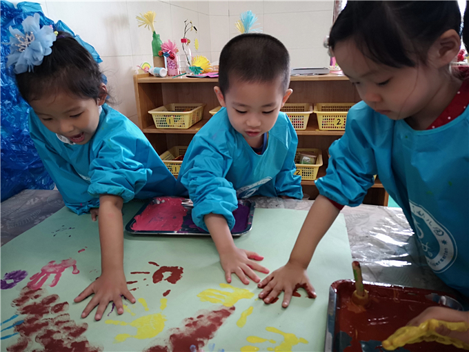 捡来的小树叶在宝贝们的巧手下摇身一变。一幅幅形象各异,色彩纷呈的树叶贴画完成了。树叶被宝贝们拼接出了不同的样子,有的像可爱的小鱼,有的像憨厚的熊猫,还有的宝贝把很多很多的叶子放在了一起,拼成了一片彩虹。
