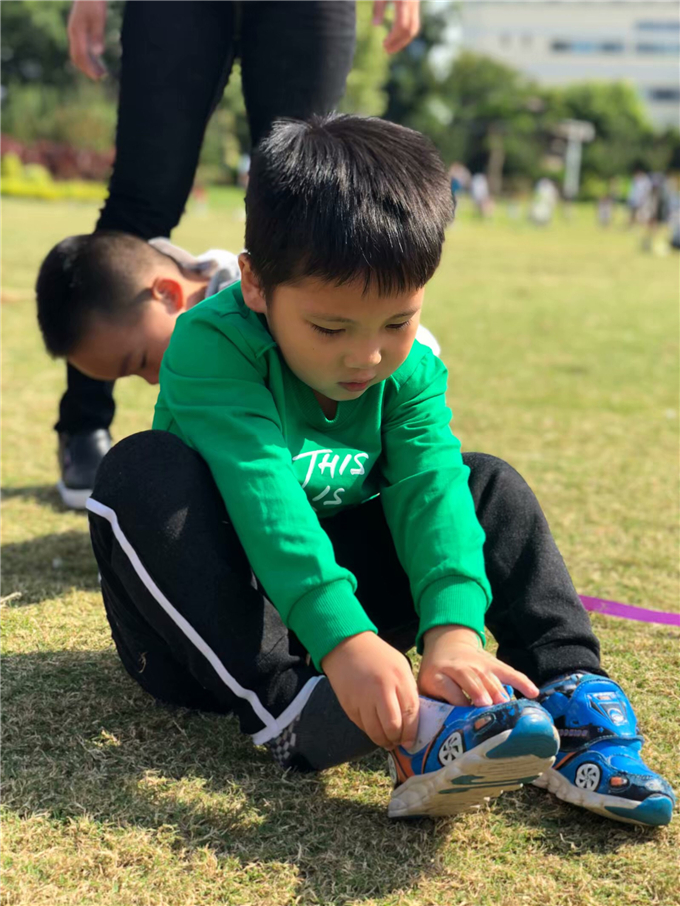 “加油、加油......”在热闹的呐喊声中,虫虫一、二、三组齐上阵,小脚踩在爸爸妈妈的大脚上向着终点出发。一二一、一二一,一组组家庭奔到了终点,但是别急比赛还在继续,萌娃们还得把鞋子穿好才算胜利。“拉开鞋口,脚蹬进去。”爸爸妈妈们在边上激烈得指导着,恨不得亲自上手帮忙。