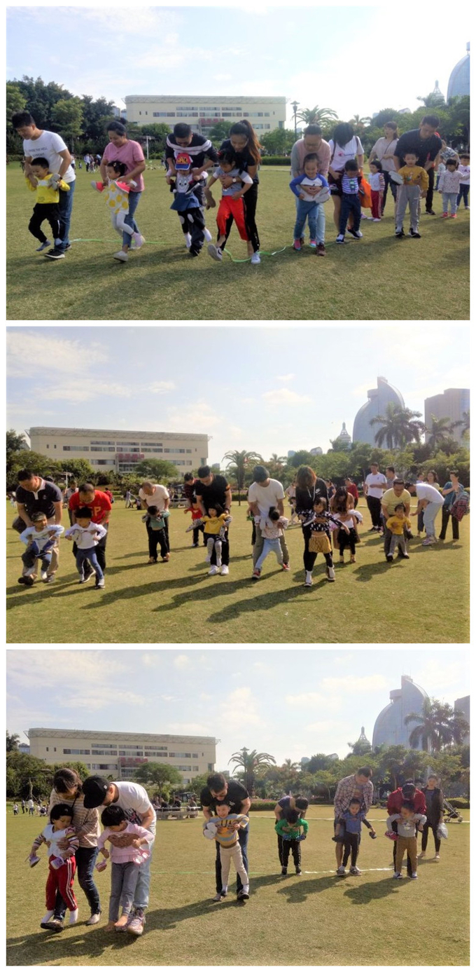 萌娃与爸爸妈妈们在明媚的阳光下自由地跑呀跳呀,过关斩将拿到了神气的活力勋章。
