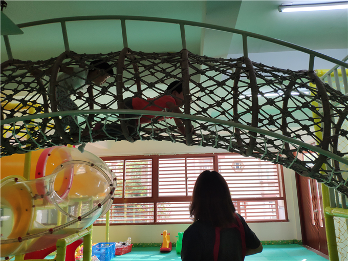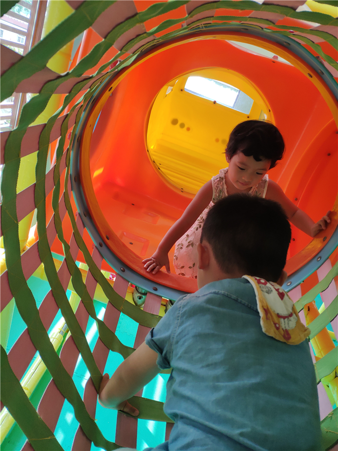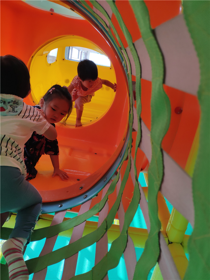 “加油哦!宝贝,你可以的。”在蔡老师的鼓励下宝贝终于成功爬出通道,相信你下次一定会更勇敢哦!