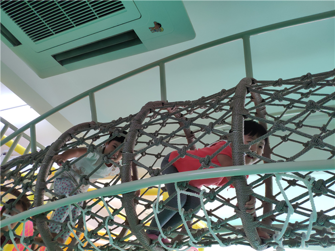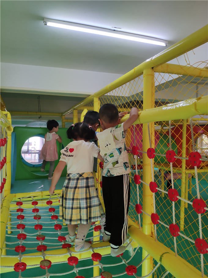 不一会儿,小三班的宝贝们已经渐渐熟悉这里啦!还会小手拉小手相互帮助,一起穿梭在淘气堡的“迷宫”里。