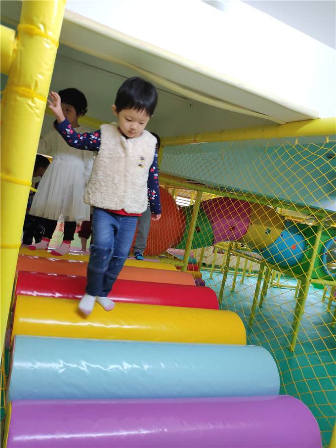 勇敢的宝贝们在老师和小伙伴的鼓励和帮助下,已经可以通过障碍物啦。真棒!