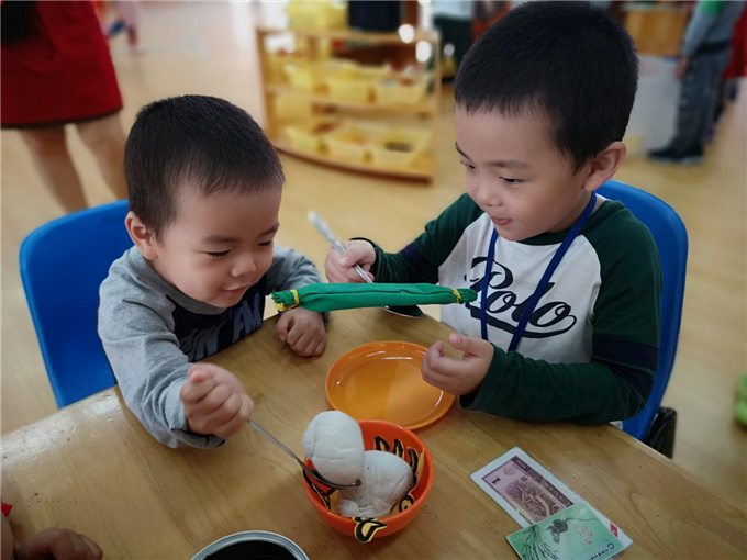 幼儿园的“南强小镇”是孩子们都喜欢去的开心乐园。今天的小镇格外的热闹,瞧!原来是中二班的哥哥姐姐带着小四班的弟弟妹妹开启了今天的游戏之旅。