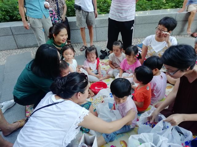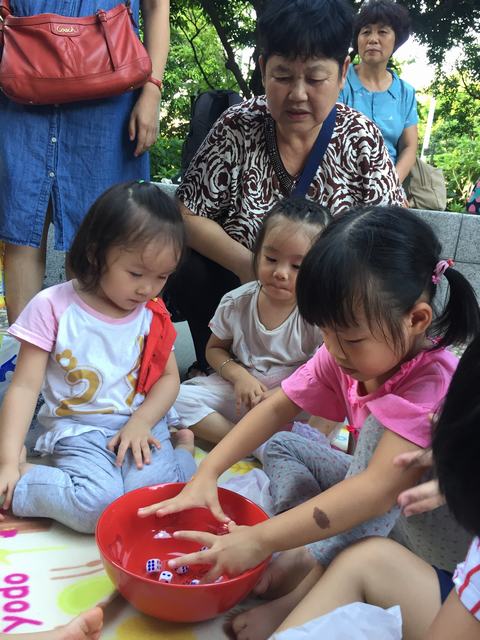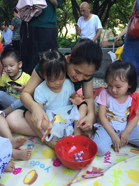 妈妈告诉我~“等会儿博到的东西要分给小朋友们一起分享哦。”
