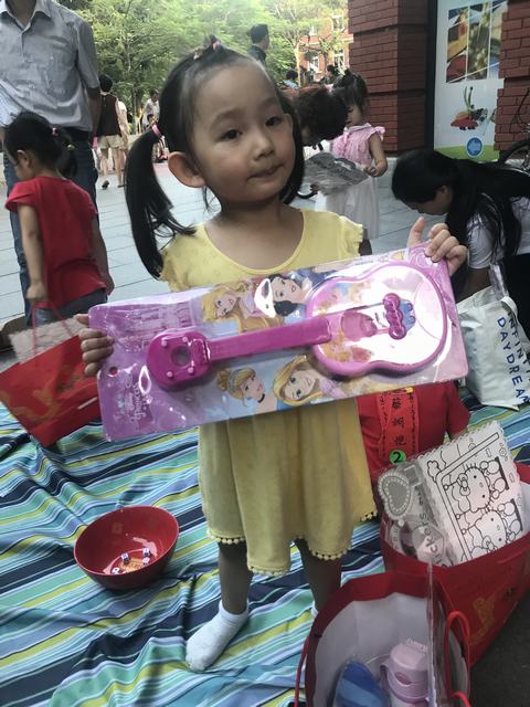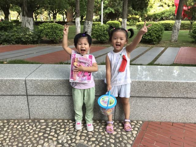 孩子们拿着自己博到的奖品开心极啦!