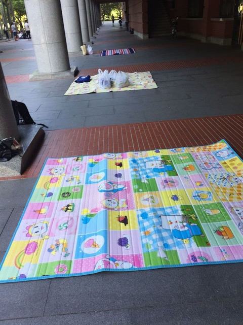 家长们早早就把把野餐垫铺好,把奖品也摆在了旁边和野餐垫中间。