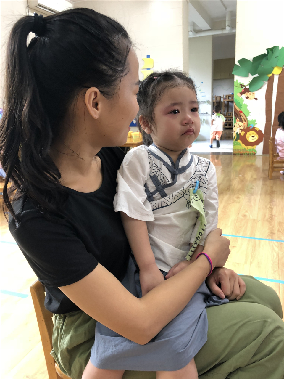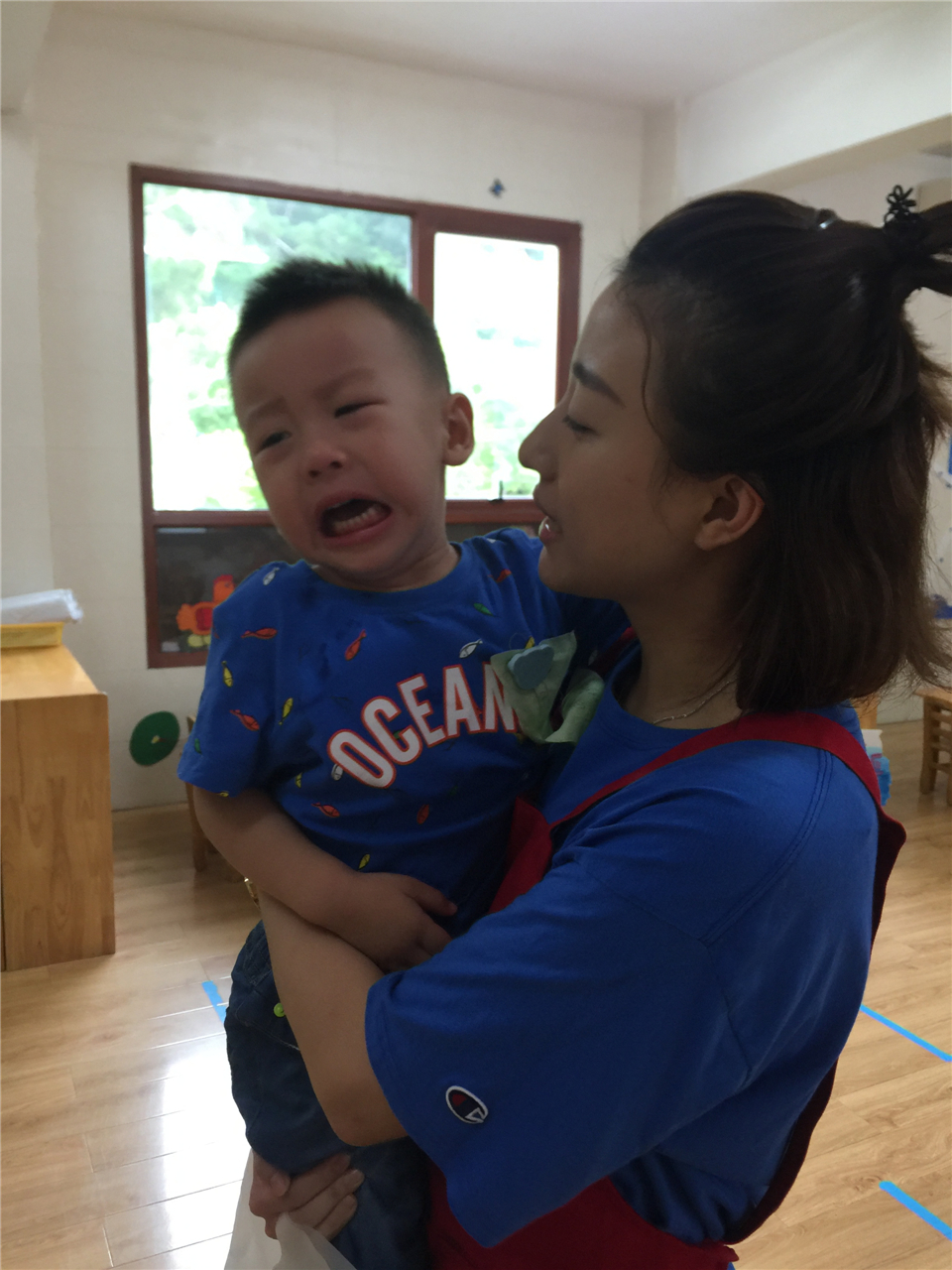 虽然心里告诉自己要坚强,但刚开始来到陌生的环境,还是有点想哭“哇……”