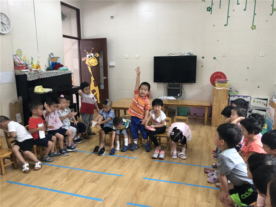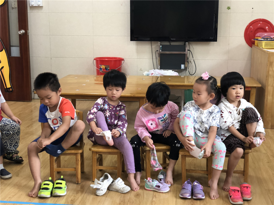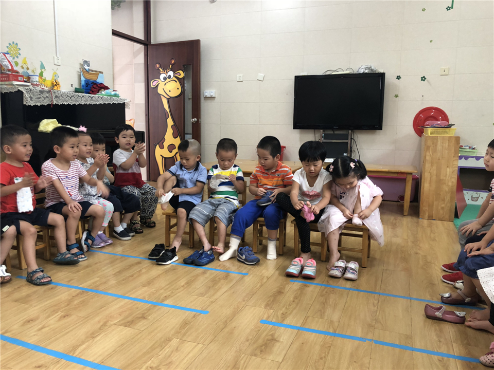穿鞋穿袜也是个大本领哦,小三班穿鞋穿袜比赛开始咯!