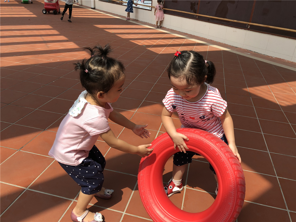 “轮胎也是我们的玩具,一起滚滚吧!”
