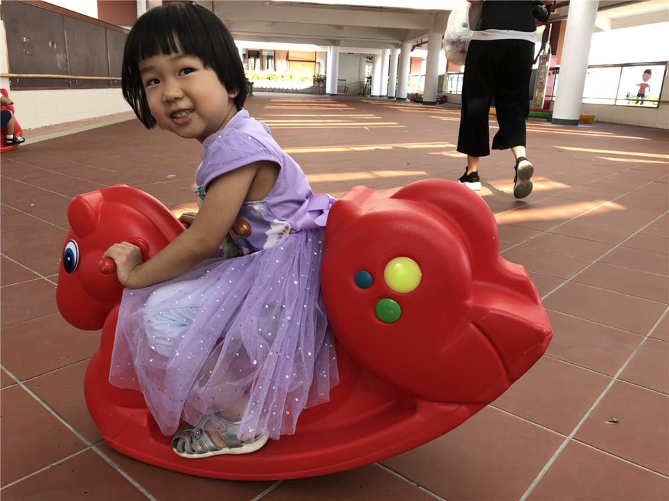 幼儿园里,户外场地超级大呀,各种各样的玩具任我们挑选,好开心啊!