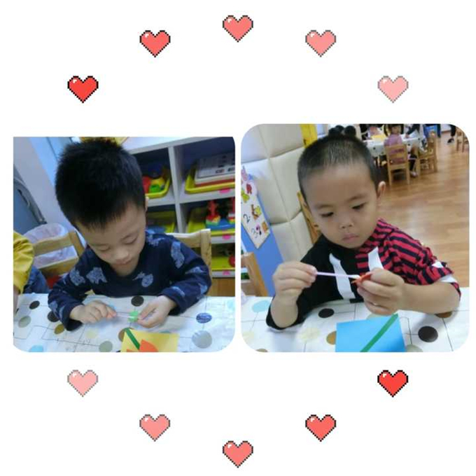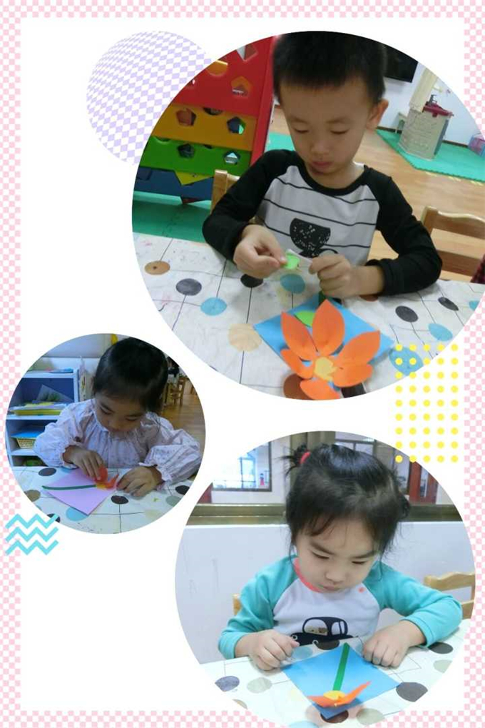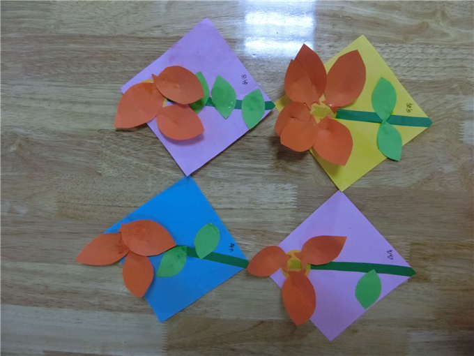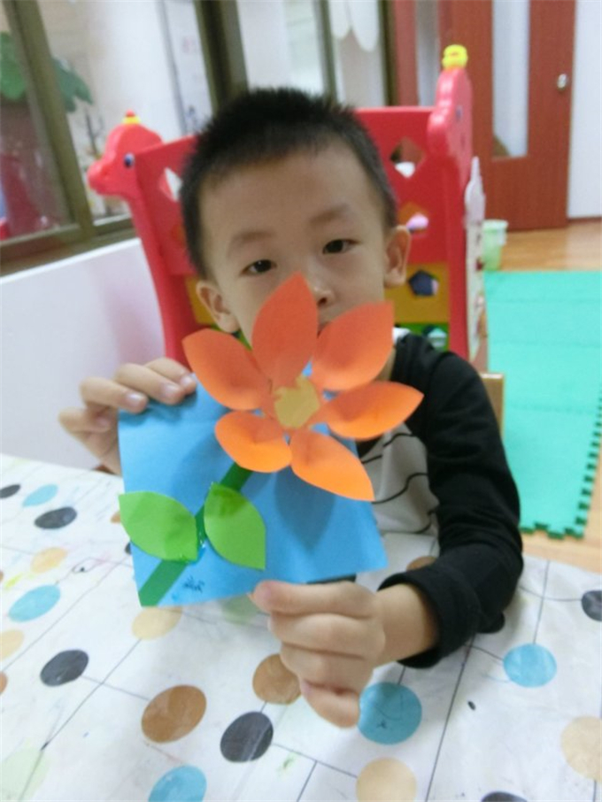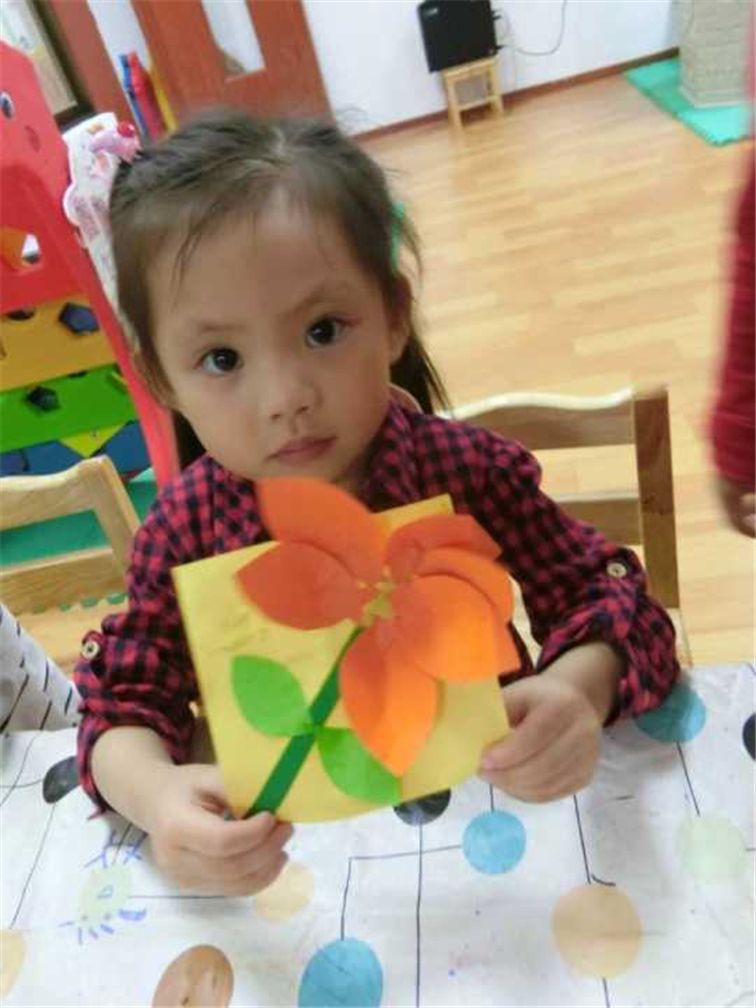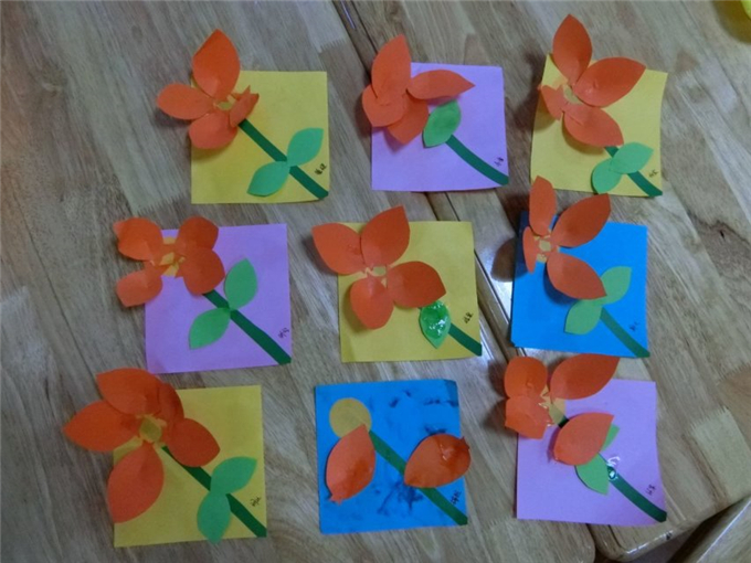 在孩子们全神贯注的制作着要送个爷爷奶奶、外公外婆的花朵卡片,不一会各式各样的花朵卡片就做好了。