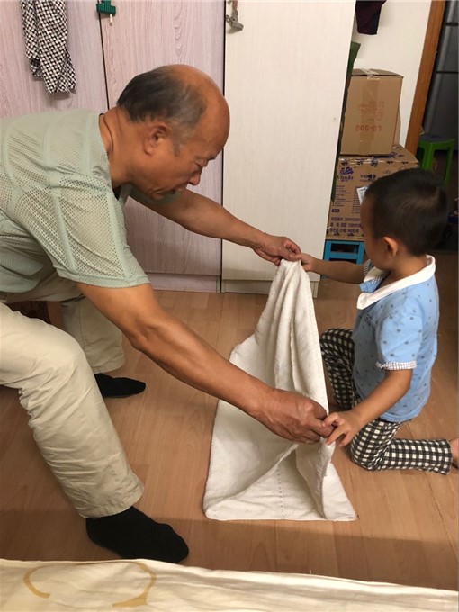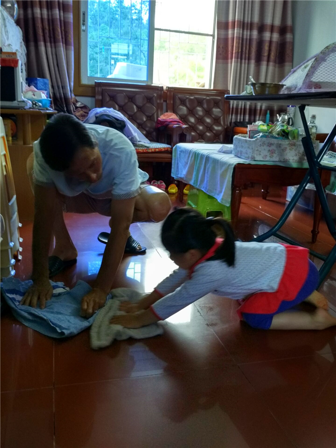 “我在帮外公擦地,他很爱我噢,我也很爱他。”