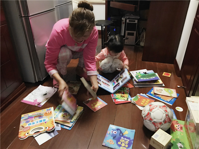 “我和阿嫲一起整理书本。我的书好乱,阿嫲都会帮我整理。”