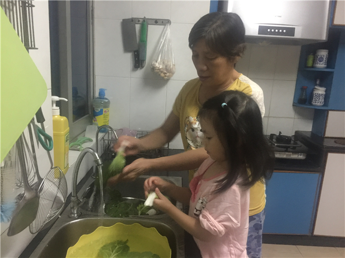 “我会帮奶奶洗菜,你瞧我洗得干净吗?”