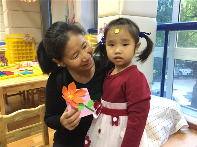 离园时间到,看到爷爷奶奶、外公外婆孩子们迫不及待的把自己制作的花朵卡片送给他们。爷爷奶奶、外公外婆的脸上洋溢着开心、满足的笑容。