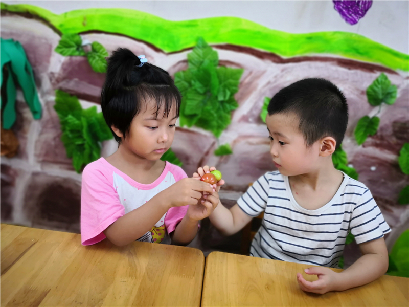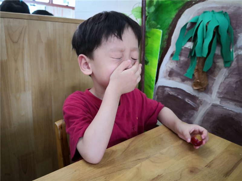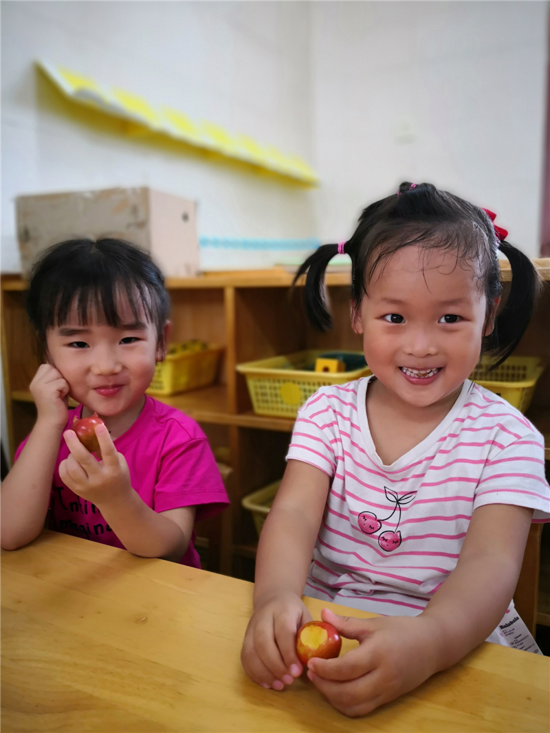 回到教室,小手认真洗干净。鲜艳欲滴的李子大家分着尝一尝。“哇,太甜了。”“我这个还有点酸。”原来,没熟的李子是小小的绿色的酸酸的。熟了的李子是大大的红色的甜甜的。