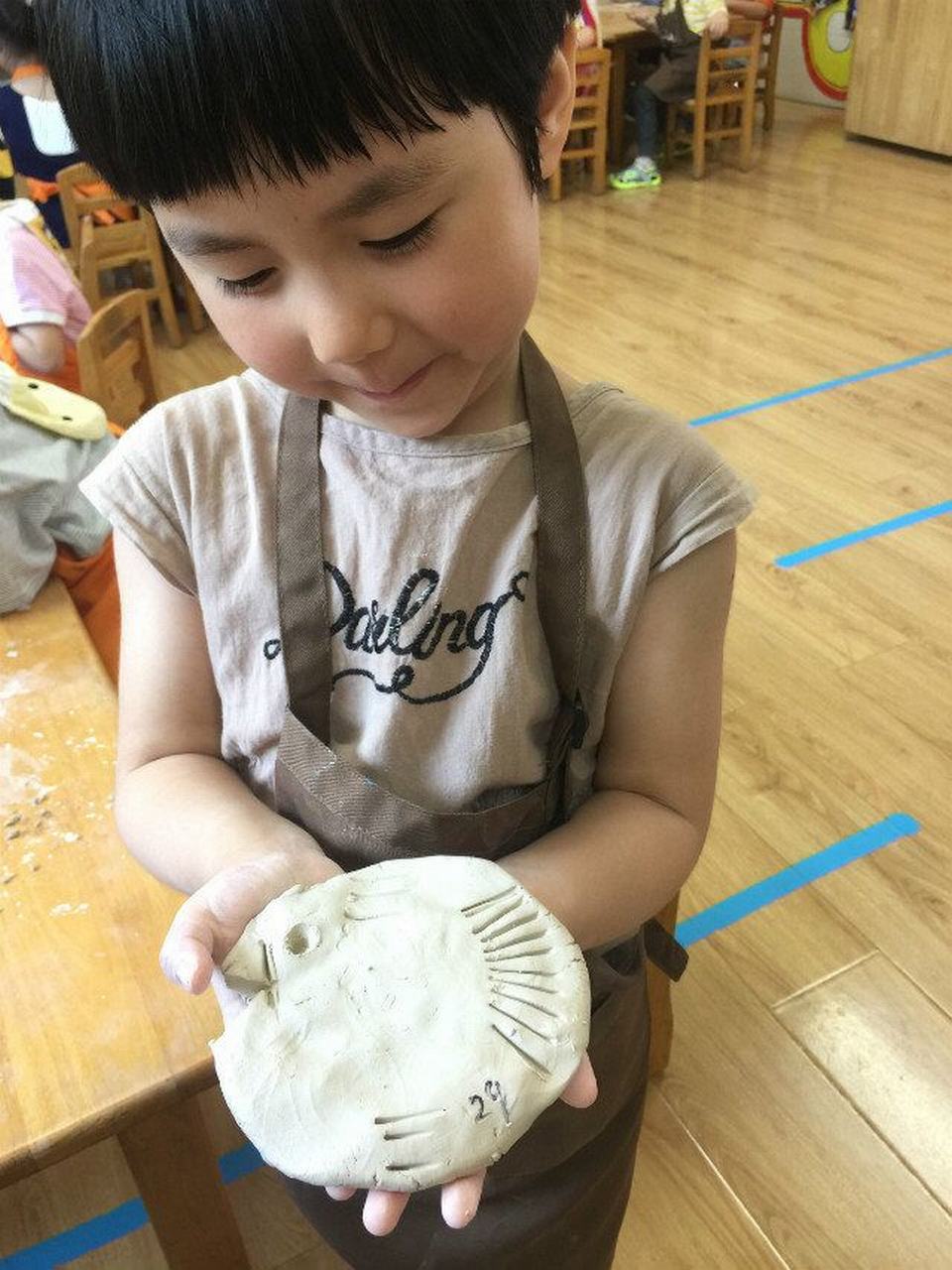 小朋友们亲手制作的陶土泥塑,豌豆爸爸后期还要将它们放入了1300度的窑里烤制呢。这些作品虽然简单,却是小朋友们自己亲手制作的,带回去珍藏起来,格外有意义哟!