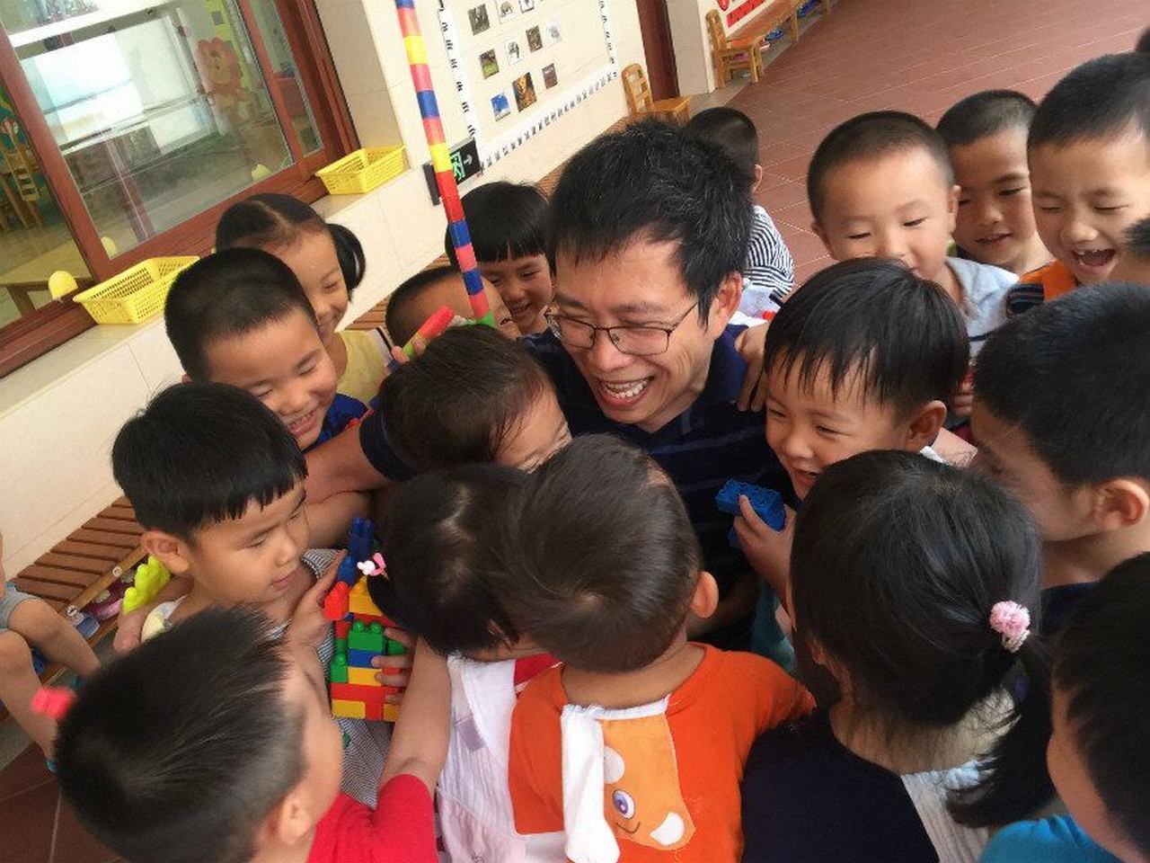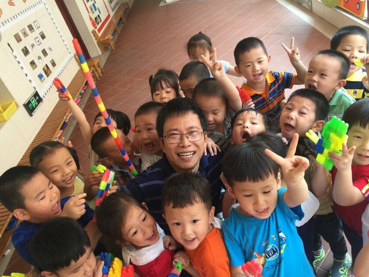 一节有趣的陶土制作活动结束了,孩子们抱着豌豆爸爸依依不舍。