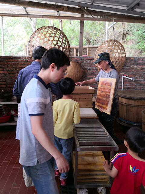 宝贝们知道豆腐是怎么做出来的吗?大家又兴致勃勃地参观了豆腐作坊,从泡豆、磨豆、点豆腐、压制成型,每一个环节都要精心把控,小朋友纷纷上前感受,“小豆子放进石墨,出来就是豆浆了吗?”“豆浆怎么变成豆腐的呀?”好奇的问题层出不穷,小脑袋瓜子怎么也不能把豆子、豆浆、豆腐三种完全不同的东西联系起来,经过教练的讲解总算了摸清了门道。
