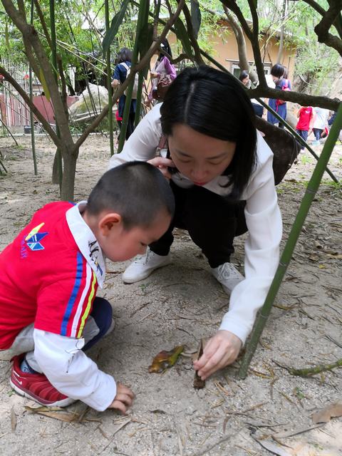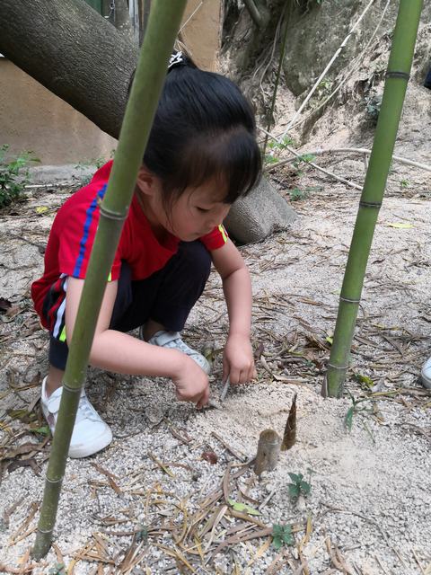 大家收获满满,接着又转战小竹林,找起了熊猫最爱的竹子,小时候的竹子藏在土里,一定要仔细寻找,小心挖掘。