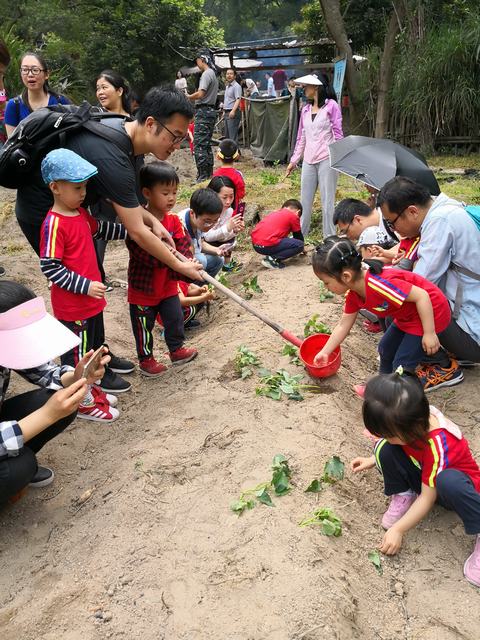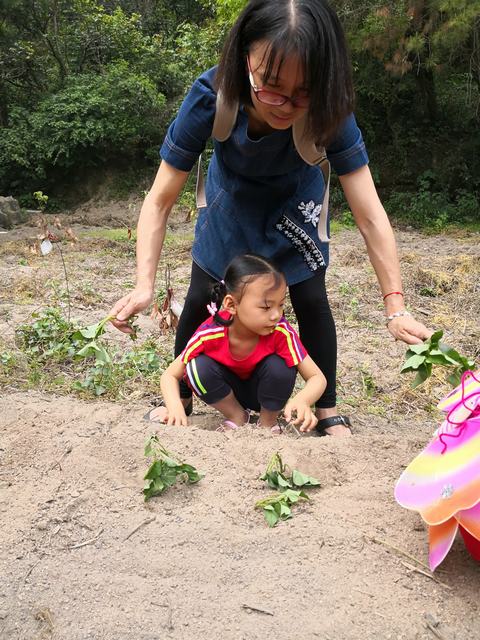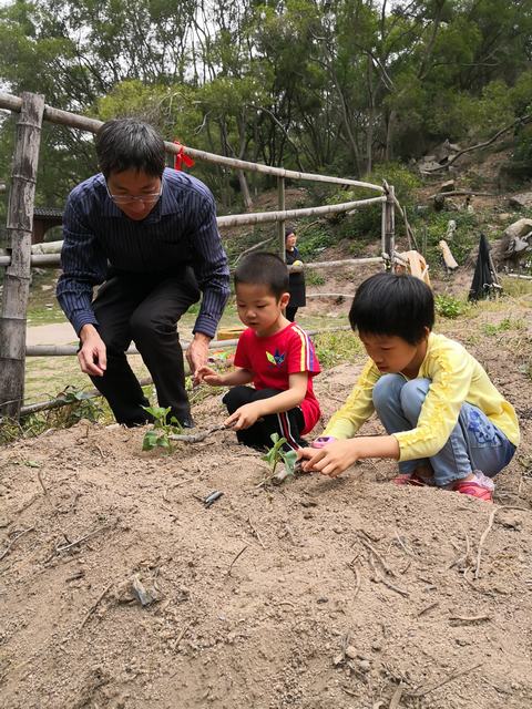 松了土,大家在爸爸妈妈的帮助下开始种下小苗,一边种还一边念叨,小苗小苗快快长,明年我们就有地瓜吃了。
