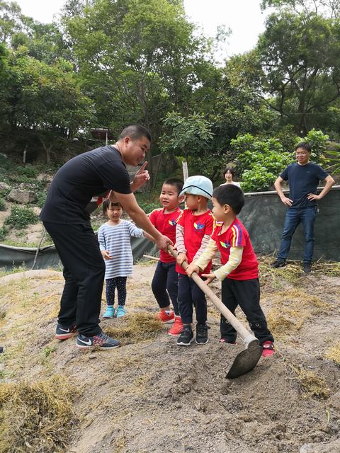一到农场,教练先给大家讲解了如何做一名合格的菜农,拿起锄头的架势一下镇住了宝贝们,一个个都聚精会神地看着教练演示。原来,要先松松土,接着插上小苗,然后浇浇水,这才是种菜的正确步骤。看完教练演示,小宝贝们跃跃欲试,一到菜地,几个“壮实小伙子”迫不及待爹抡起锄头,才发现,怎么这么沉啊?不要紧,几个小伙伴合力抬起锄头,一样能当个庄稼能手!