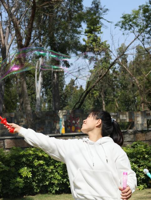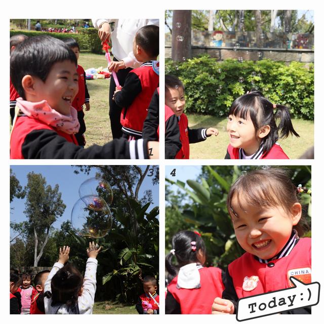 寻着声音,补充好能量的萌娃们投身到了一场和泡泡的追逐游戏中去啦!