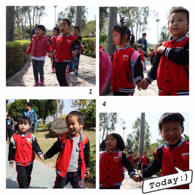 萌娃们排着队,迎着微微春风,怀着无比喜悦的心情,牵着小手走在公园的小路上。“今天的天气真好,这公园的可真漂亮呀!”