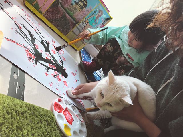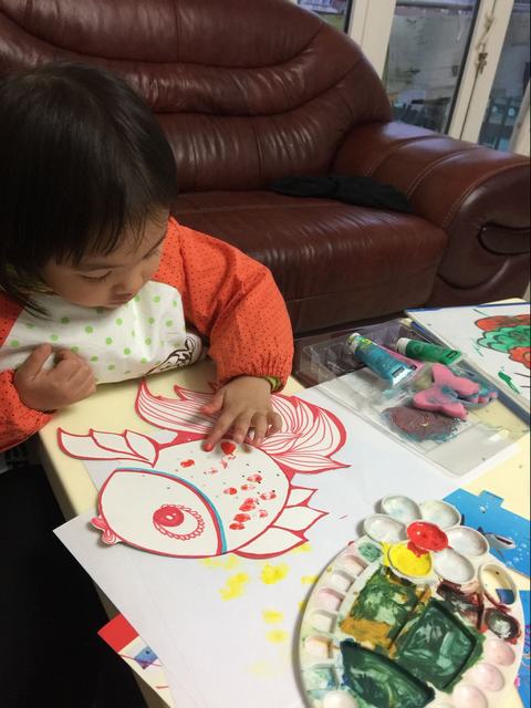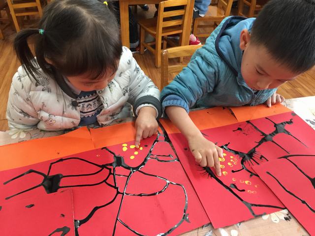 搓完了汤圆,还有孩子提议可以动手做一盏有特色的花灯!在老师的帮助下,孩子们纷纷开始动手,用墨汁在纸张上自由流动出了线条,变出了梅花的枝干,又用小手在枝干上点画出了梅花,是不是很漂亮呀!最后,孩子们还动手剪出了花灯的流苏,瞧他们一个个提着自己动手做的小花灯,别提有多兴奋啦!