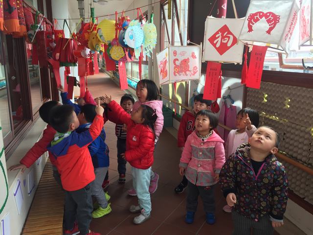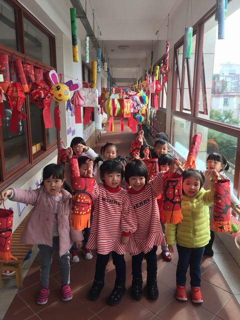 开学第一天孩子们就提着在假期中和爸爸妈妈们一起做的花灯,和老师一起布置教室。亲子制作的花灯原材料多种多样,有的用废旧的红包折叠花灯,有的用肯德基桶制作花灯,还有的还用废旧的糖果瓶制作花灯……孩子们将家里带来的花灯拿在手里把玩着,五颜六色的花灯和孩子们的笑声使教室的每个角落都充满了节日的欢乐和喜庆。
