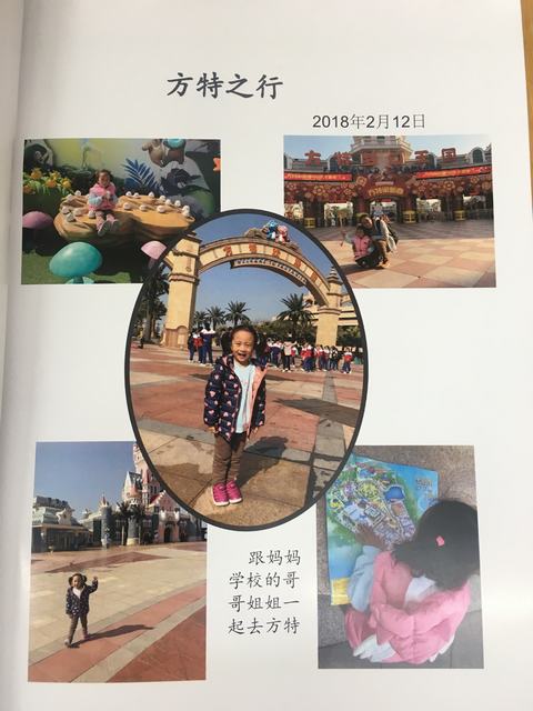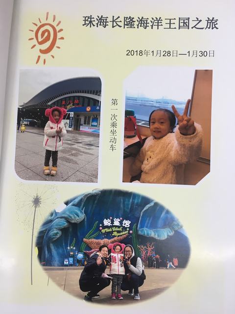 点点说:“这是去了广州的长隆动物园,看了粉红刺,坐了旋转木马…还跟姐姐一起去了方特游乐场。这是跟哥哥一起去爬山,还和妈妈一起做灯笼……”