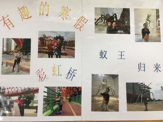 “我寒假跟爷爷奶奶回老家漳州,在漳州看了蚁王的雕塑,还跟爸爸一起学习搭篮球。”