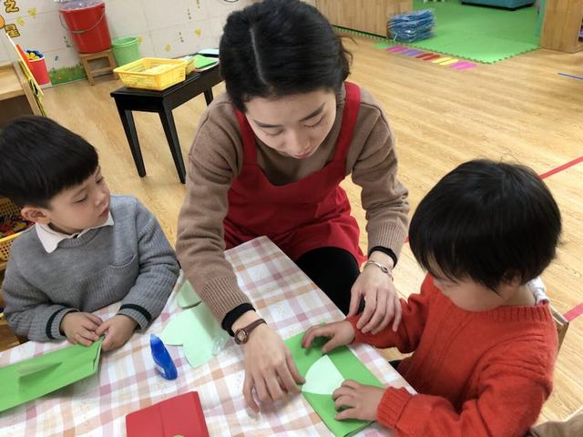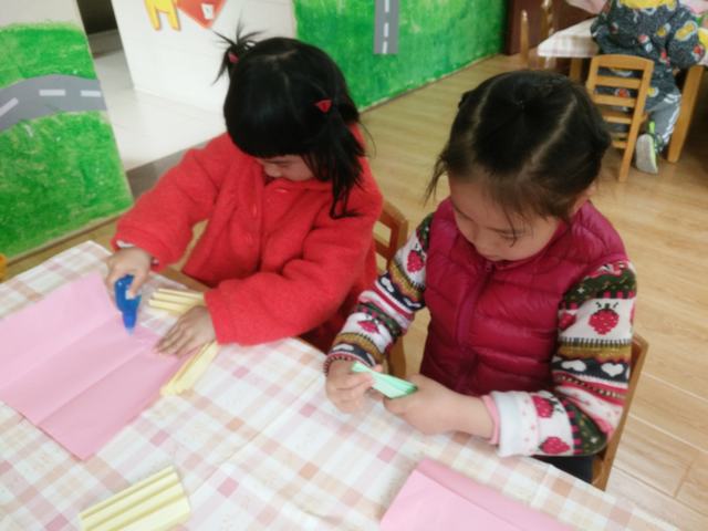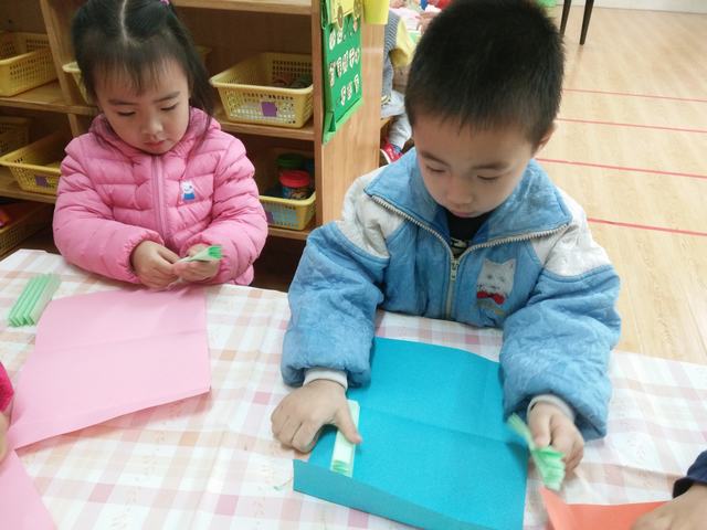 真正动手的时候到了,一双双小手努力地折啊叠啊,时不时还听见给自己的鼓励声。“你瞧,我的钱包马上就要做好了!”“看看,我的钱包做的多好看呀!”当然免不了个别小朋友嘟着嘴说:“老师,我不会做……”别急,在老师手把手指导下,很快,一个个漂亮的钱包做好啦,宝贝们脸上洋溢着开心与骄傲!