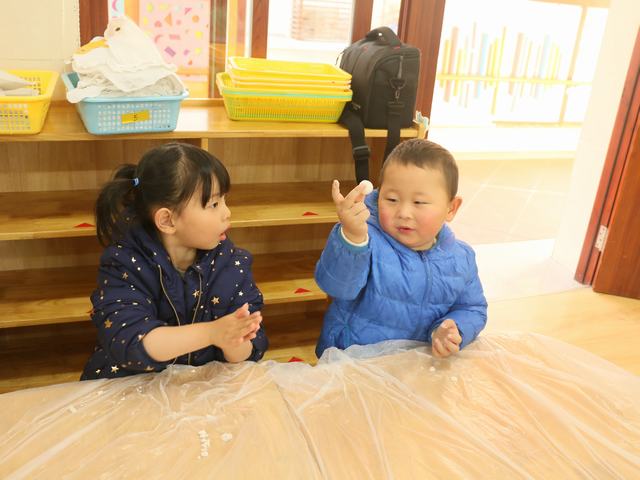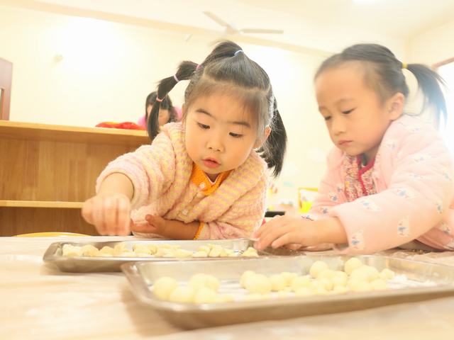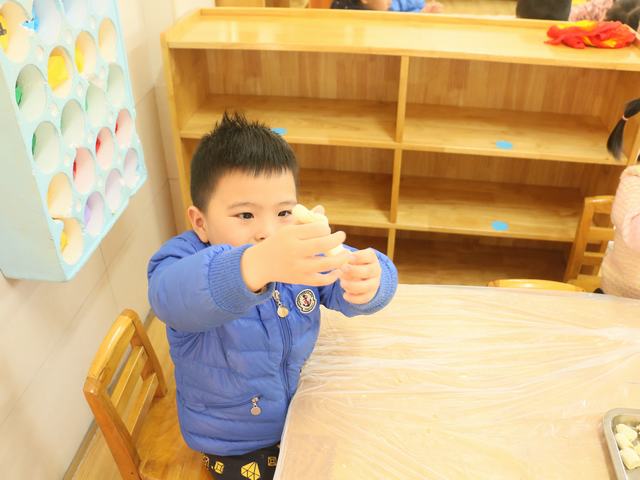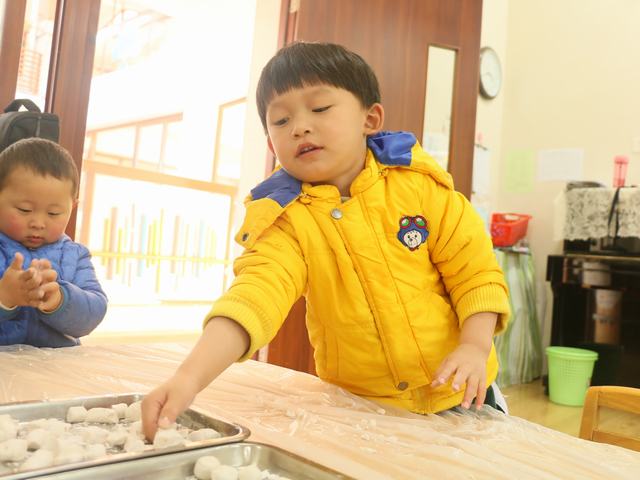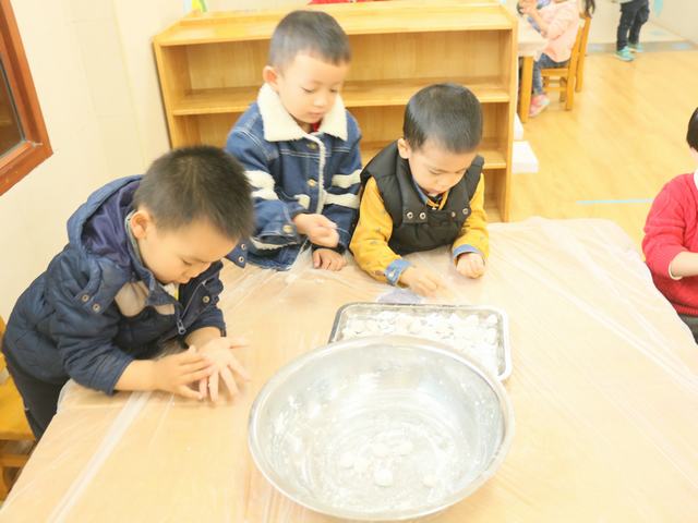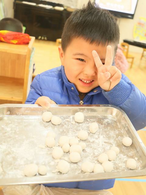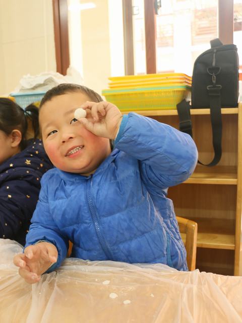 萌娃们开始搓汤圆啦。