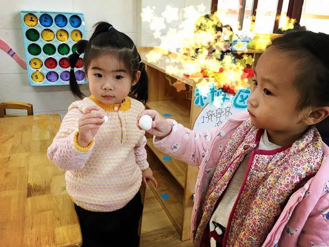 好朋友之间来比比谁的汤圆大。搓完一个,再搓一个……“我要搓很多很多的汤圆”。大的、小的,这些大小不一的汤圆聚在一起,颇有“大珠小珠落玉盘”的味道。