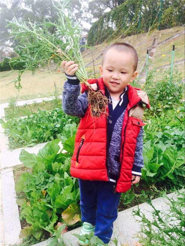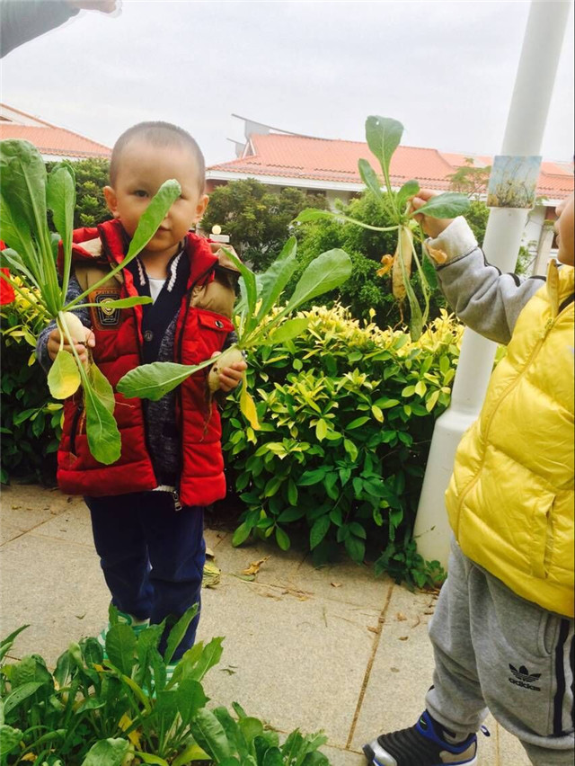 杂草除净了,蔬菜宝宝在冬日的暖阳下神气地迎风摇摆,“老师老师,地底下的蔬菜宝宝长大了吗?”我们一起来看看吧!小小手小心翼翼地抓着蔬菜叶子的根部,用力拔一拔,拔出来啦!“哇!真的有白萝卜呀!”“这是红萝卜”“老师,我们的西红柿要什么时候才结果实呢?”呵呵,期待哦!