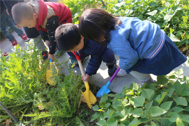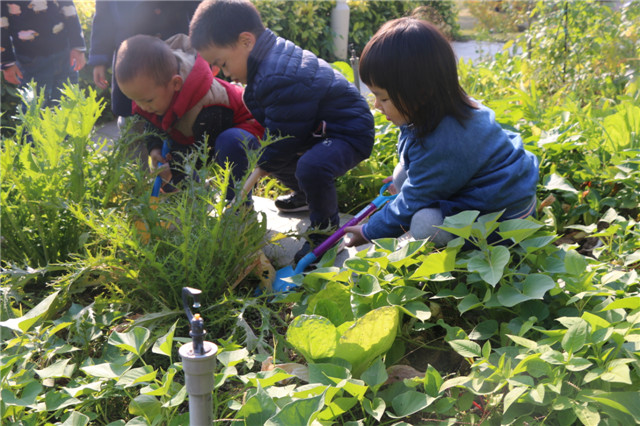孩子们兴奋、开心的叫声和笑声回荡在冬日暖阳下的小菜园里。